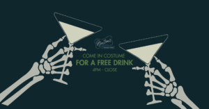Show up in costume = FREE drink on us (well, wine, or beer).